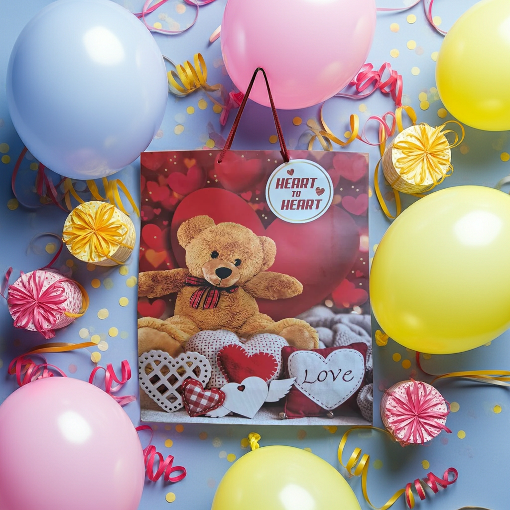 | Product Info | Gift Paper Bag with Teddy Bear – Multicolour perfect for party and gifting |